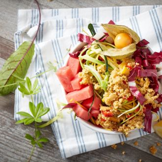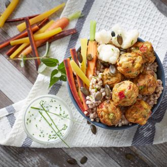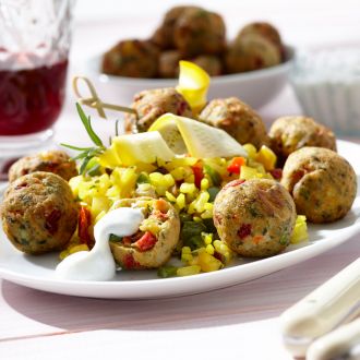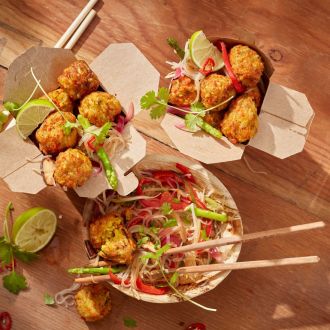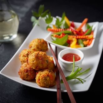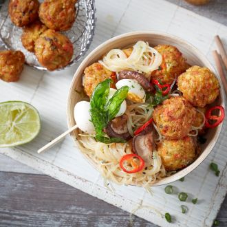 Gemüse-Reis-Bällchen Asia auf Glasnudelsalat